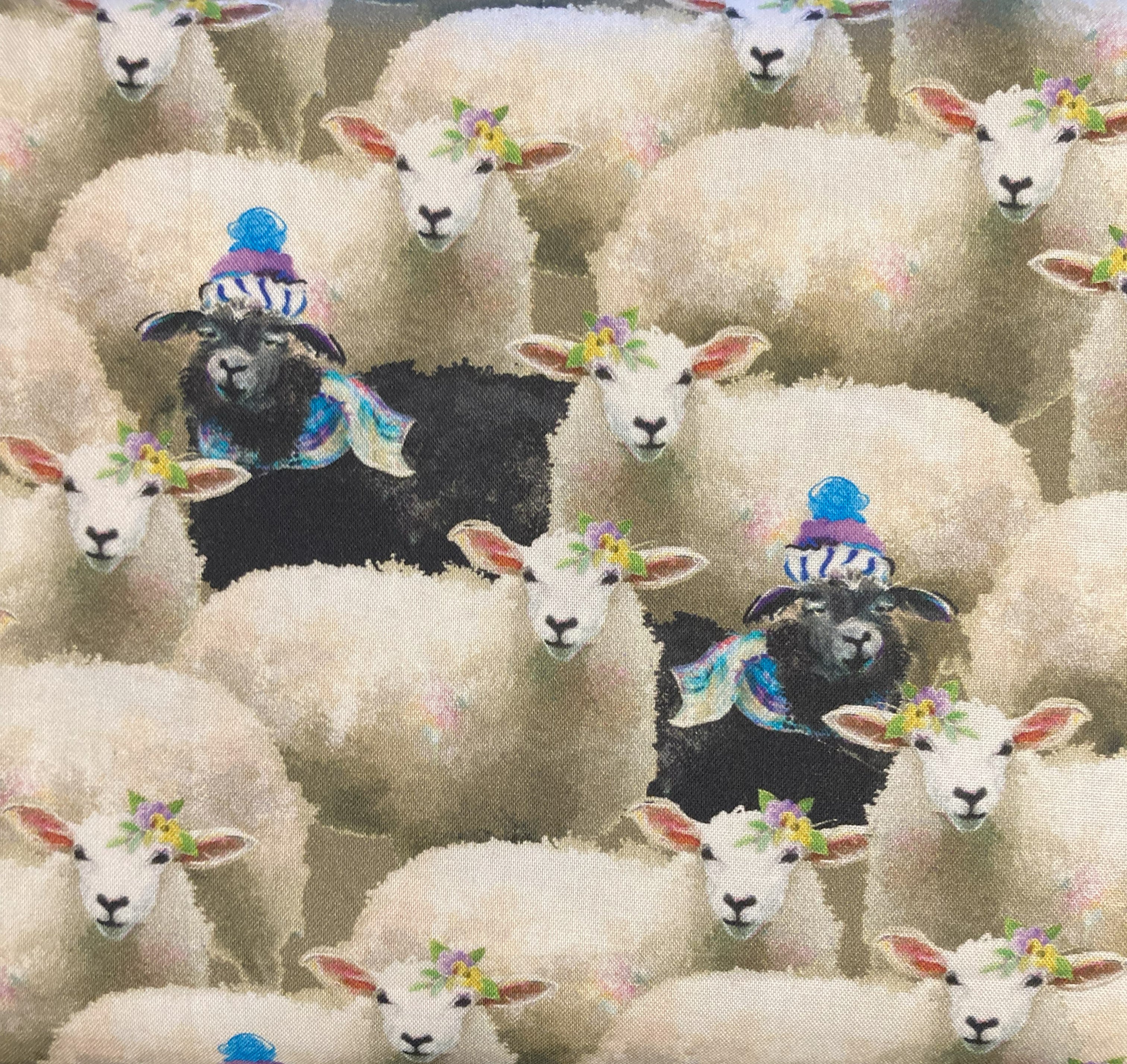 Fabric Back to The Farm BLACK SHEEP